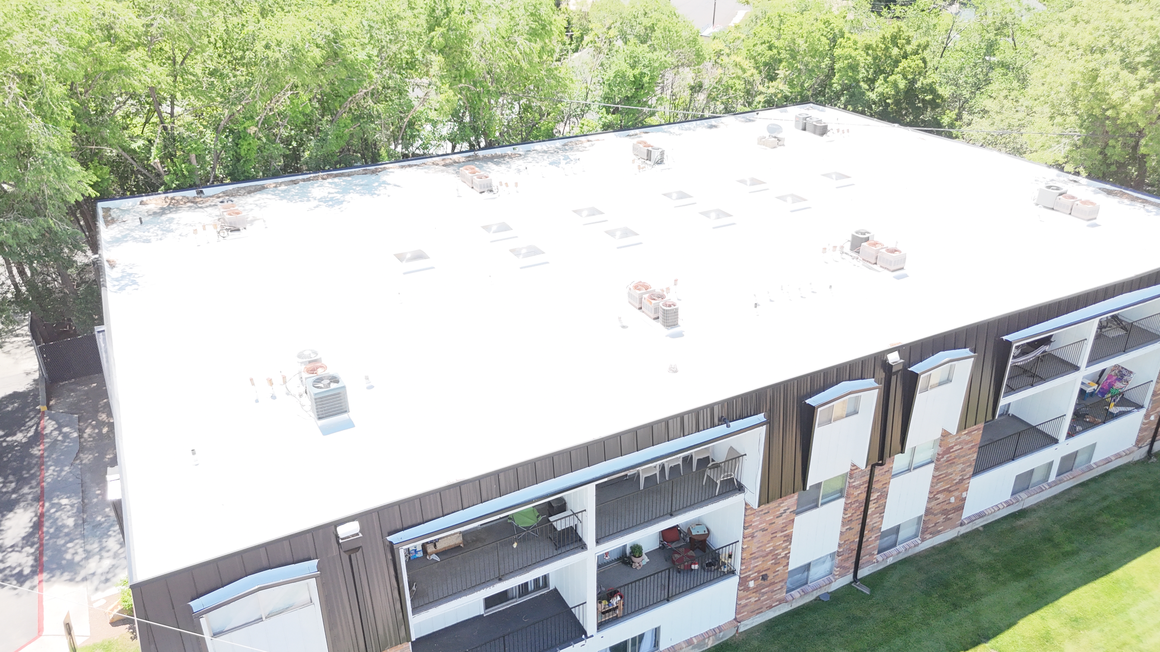 Approx. 14813 sqft installation. Apartment Building. Originally built in 1977. Style: Shingles Type: Versico TPO system and Metal panels for the Mansard Color: Bronze Extra Features: Comments: "We were able to remove all the old roofing for these apartments buildings had to fix a lot of dangerously damaged wood due to prolonged leaks. Installing new membrane and metal for the mansard."1 |