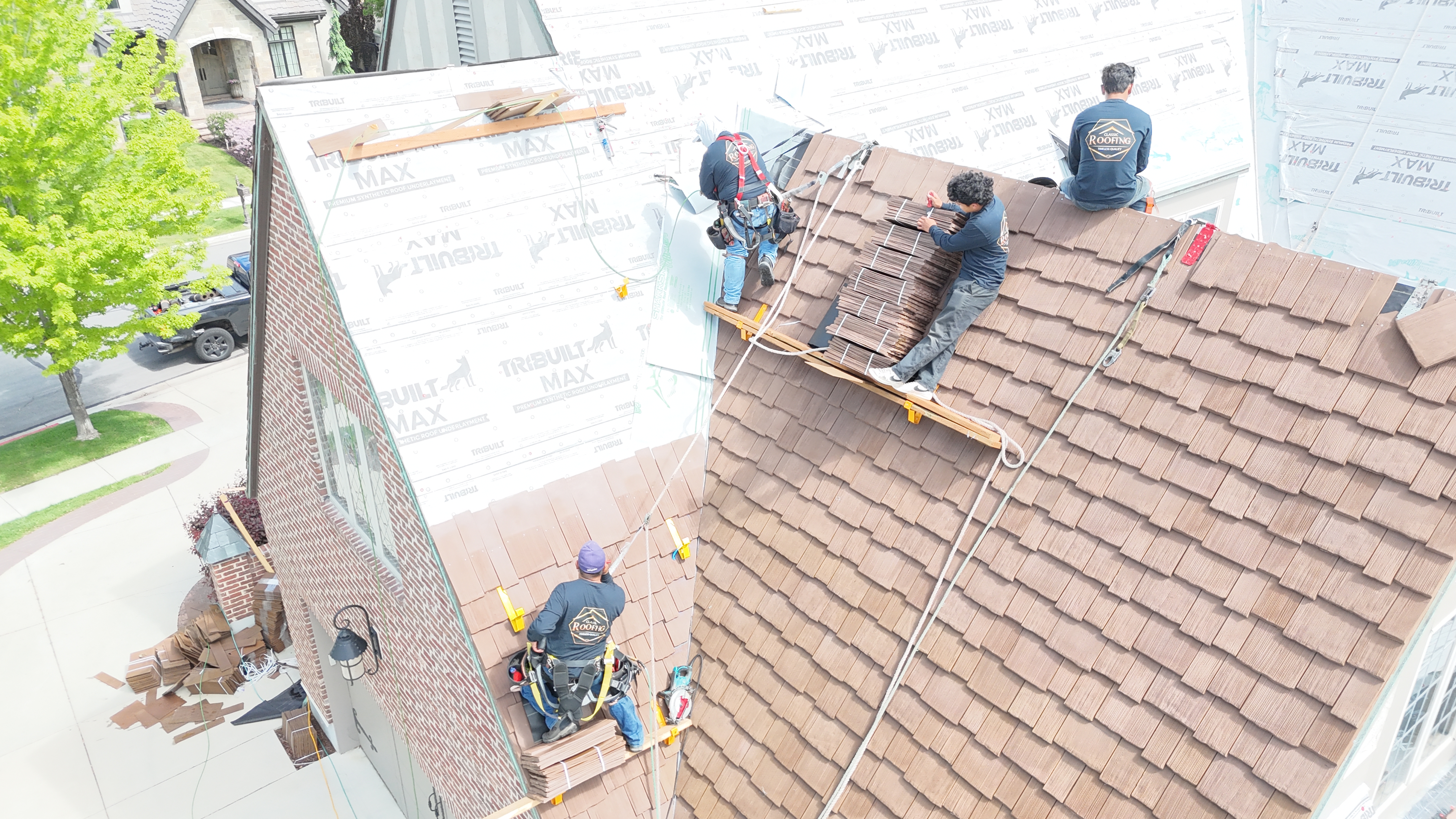 Approx. 6560 sqft installation. SingleFamily home. Originally built in 2005. Style: Shingles Type: Cedur Shake Color: Live Oak Extra Features: Ridge venting Comments: "This project was quite a beautiful project. So glad to be able to help with the synthetic shake and get this installed for the customer. “ 1 |